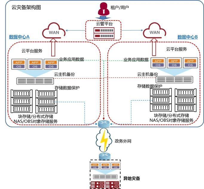 為此,鼎甲提供了一套基于多云平臺虛擬化環境的災備解決方案,透過虛擬化備份技術和數據保護技術,為其提供數據級和應用級的雙重災備保護。該方案部署如下: