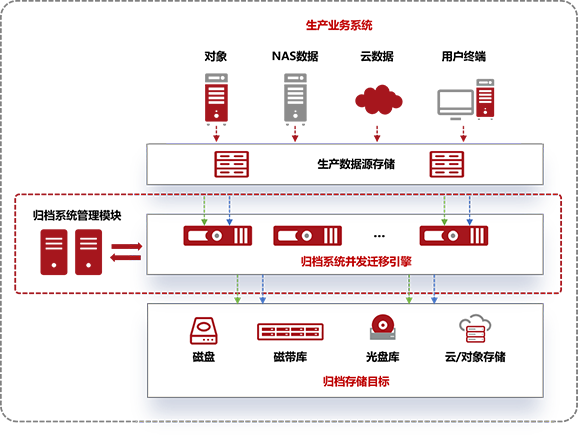 《電子檔案管理辦法》要求對檔案數據進行統一管理,特別是在存儲資源優化與長期保存方面提出了更高要求。鼎甲的 InfoArchiver 數據歸檔系統提供多級存儲支持,能夠將非結構化數據智能歸檔到磁盤、磁帶、光盤等不同介質中,幫助用戶優化存儲資源。通過自動化的歸檔與遷移機制,用戶能夠輕松管理海量檔案數據,降低存儲成本,同時確保數據的可讀性與安全性。